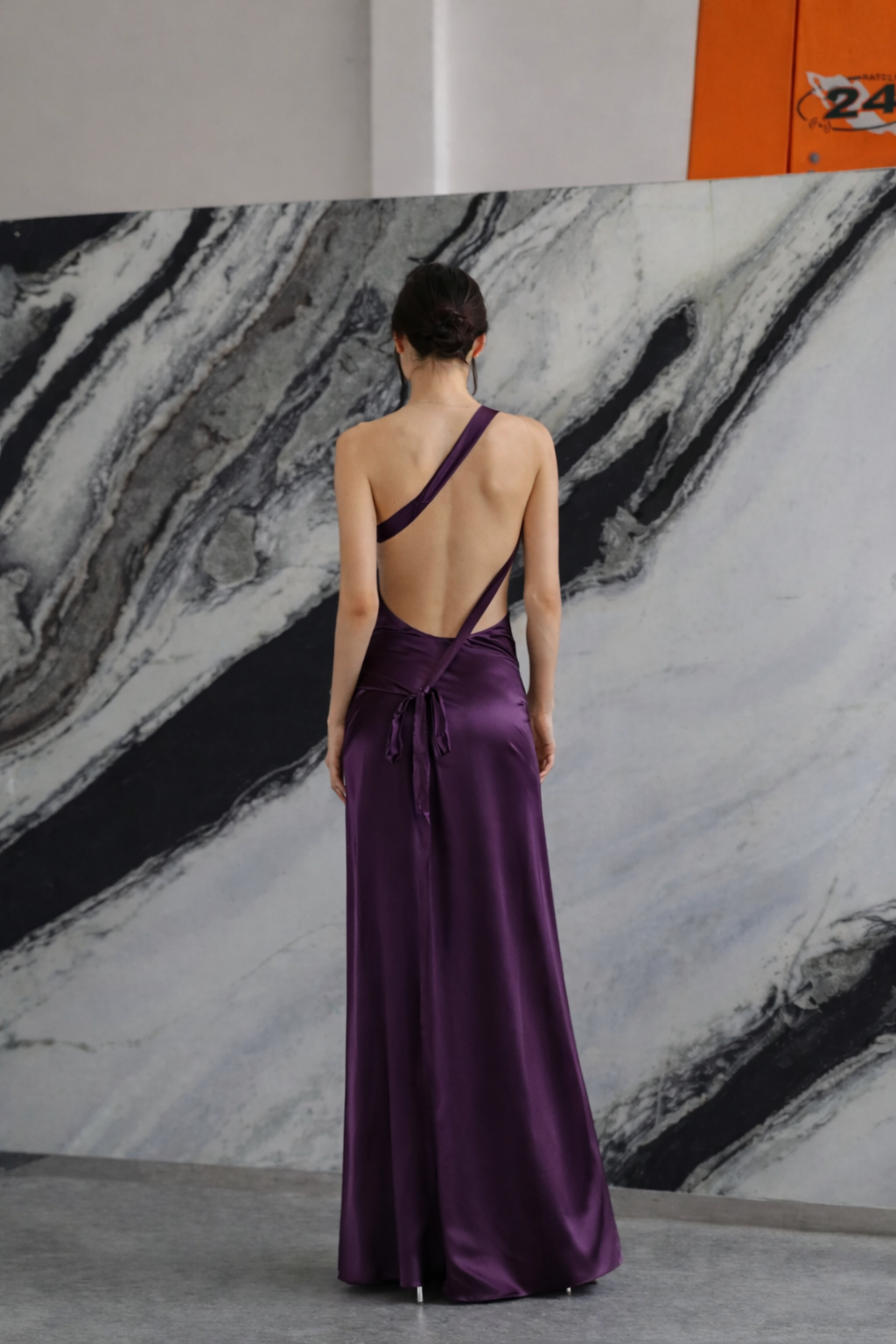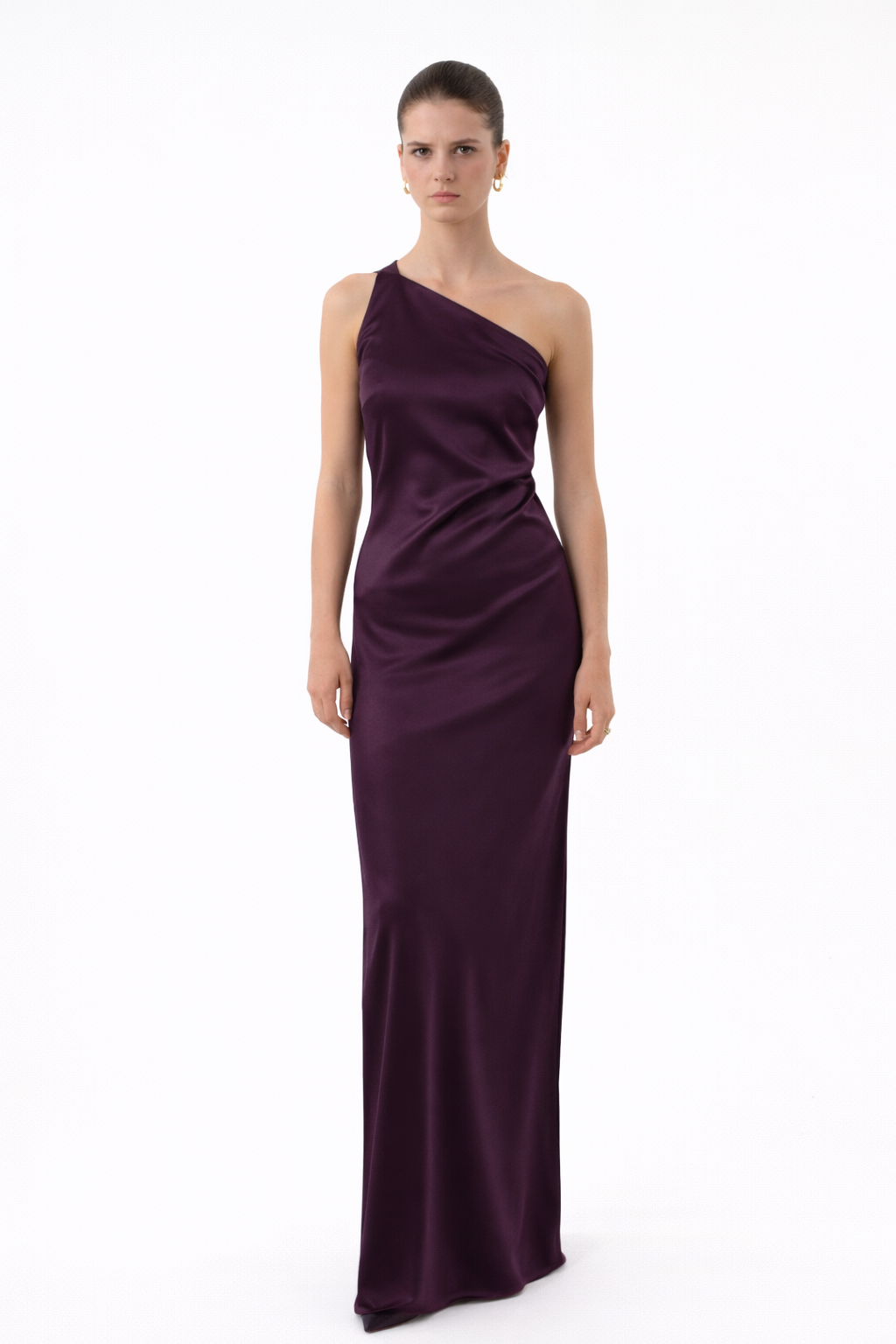 Vestido sofisticado de tela suave con corte asimétrico (un hombro) moderno, ajustable, hecho para acentuar la elegancia en ti, combinando un estilo innovador con su espalda totalmente descubierta.